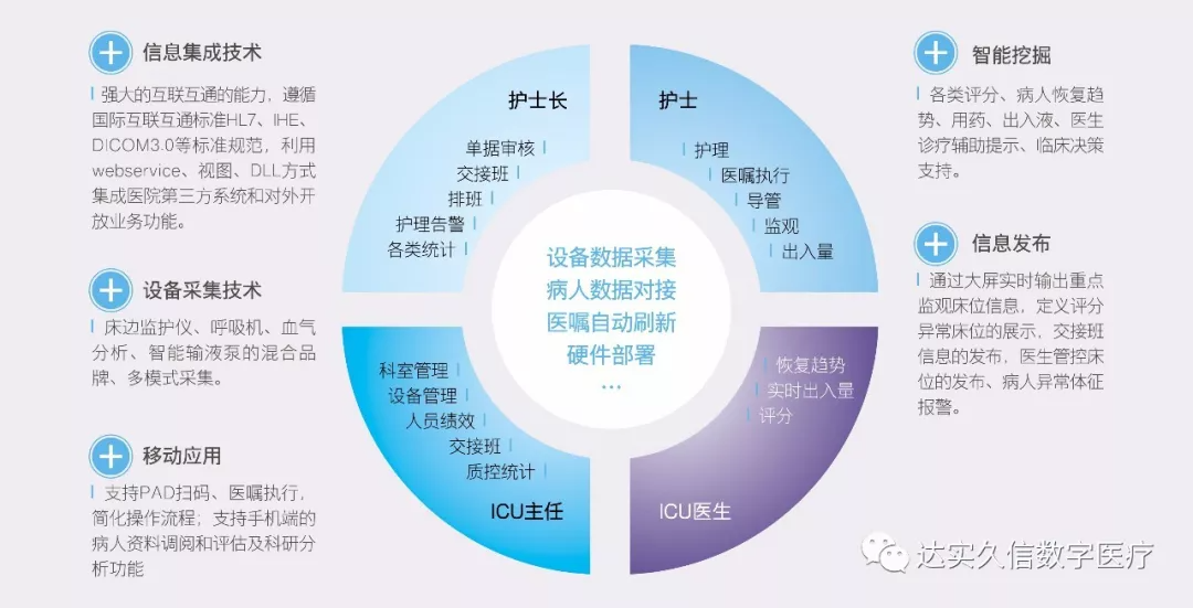 該系統整合了信息集成、設備采集、移動應用、信息發布、智能挖掘五大應用技術為一體的專科診療輔助系統。通過信息化手段,減少醫護的紙質文書的書寫,并實時抓取和展現病人護理過程數據,讓醫護能最快地了解病人的健康狀況和恢復趨勢,騰出更多的時間和精力關注病人病情。通過合理化設計,讓科室護理業務和管理業務有條不紊,并滿足了護理過程數據可存儲、易展現、可質控、可追溯的特點,以重癥業務為核心,病人為主線,塑造符合重癥專科的臨床系統。